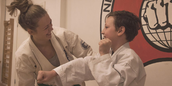 Karate er sjovt. Vi ved at den bedste måde at lære dit barn karate, er igennem en veksling mellem leg og seriøsitet.